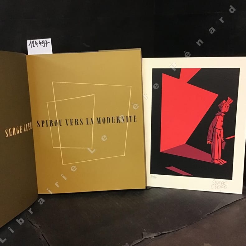"De Calder à Picasso en passant par Chirico, Serge Clerc interroge l'essence même du personnage de BD qu'incarne Spirou (...)" Édition originale limitée à 2.600 exemplaires. Un des 2.399 exemplaires destiné à la vente, incluant une sérigraphie numérotée et signée. Nous joignons un croquis à la mine de plomb représentant Spirou dans un condensé de l'Art Moderne au milieu d'oeuvres d'art et de meubles Design. Annotations de l'artiste, à la mine de plomb, au verso avec un croquis de Spirou.