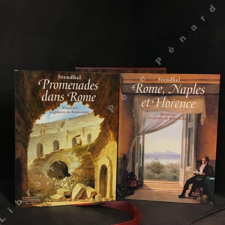 Bon état - Menus frottements sur les couvertures et l'emboîtage - Une auréole de mouillure sur les premières pages du volume "Rome, Naples et Florence" Bon