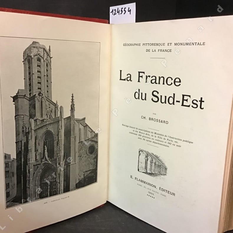 1903 E. Flammarion, Editeur - Collection "Géographie pittoresque et monumentale de la France" - 1903 - Fort in-4, reliure demi-chagrin rouge signé Engel, plats en percaline rouge, titre et décors en doré sur le premier plat, décors à froid sur le quatrième plat, dos lisse orné du titre, de filets et d'un riche décor en doré, toutes tranches dorées, signet vert, frontispice - VI-648 pages - Ouvrage contenant 160 gravures en couleurs et 342 en N&B, avec 24 cartes départementales