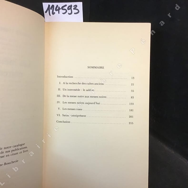 Sommaire : Qui est Satan ? - Naissance du diable - Satan contre Dieu - La lithurgie démoniaque - Les messes noires - Sociers et socières - Les grands inities - An 1000 : fin du monde; règne de Satan - Le secret des Templiers : le Baphomet - Gilles de Rais - Le docteur Faust - Cagliostro et Sade - Boullan, prêtre démoniaque - Raspoutine - Hitler au service de l'Enfer - La France maléfique - 66 des 666 lieux démoniaques de France - Le cercle maléfique de Paris - Les adversaires de Satan - Le catholicisme et Satan - L'Islam et Satan - Le judaïsme et Satan - L'église réformée et Satan- Lucifer et la justice - Interview de Me René Floriot è Faits divers - L'inquisitionet la Torture - Charles Masson, assassin de Satan.. Classification Dewey : 70.49-Presse illustrée, magazines, revues