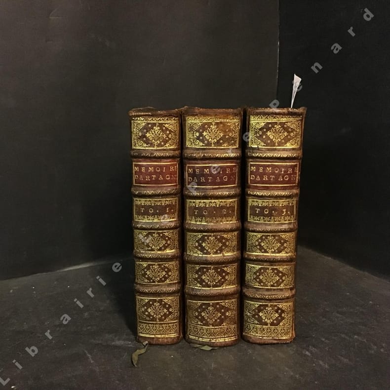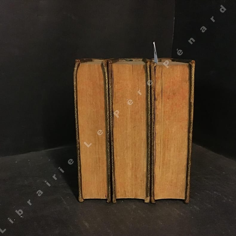 BEL ETAT pour ce rare ensemble dont les trois volumes sont datés de 1701. Petites marques de frottements et d'érosion au cuir des reliures ( légère érosion de certaines coiffes et coins un peu émoussés ) pour cet ouvrage qui inspira Alexandre Dumas