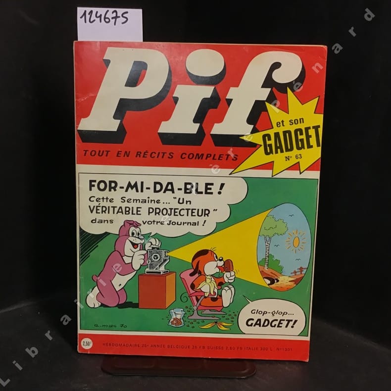 1970 N° 63 - Éditions Vaillant - Avril 1970 - Revue hebdomadaire illustrée - In-4, broché couverture illustrée - 76 pages - Bandes dessinées en N&B et couleurs - GADGET INCLUS et non détaché.