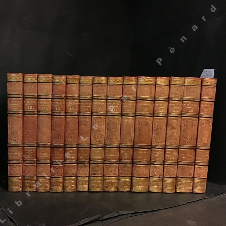 Bon / très bon état de conservation pour cette première édition des œuvres complètes de Chateaubriand. Couleur uniforme des reliures légèrement insolées - Rares rousseurs - Petites marques de frottements