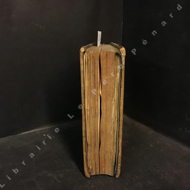 Bon état général - Petit galerie de vers sur le coin supérieur des premières pages jusqu'à la page 64, sans atteinte au texte - Craquelures et épidermures sur l'ensemble du cuir - Coiffes érodées avec manques de matière - Trois trous de vers sans galerie au dos - Début de fente aux mors inférieurs - Intérieur resté frais Bon