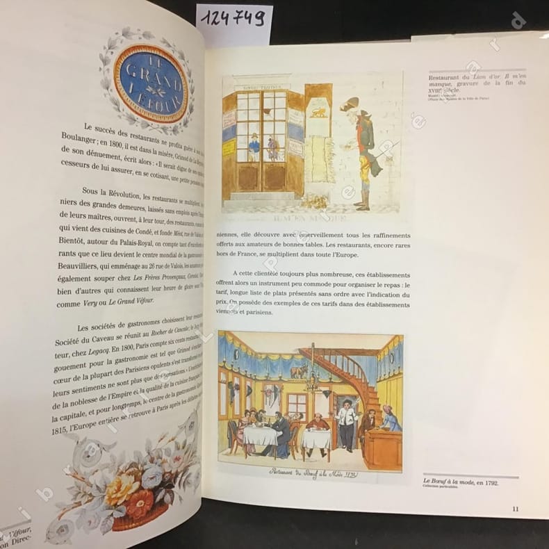 Editions Robert Laffont, 1989. Préface de Michel Tournier. Livre avec de nombreuses illustrations en couleurs et en n&b. Plus de 300 Menus du monde entier, des soupers fins de Madame de Pompadour aux grands banquets de la République illustrés par Mucha, Steinlein, Toulouse-Lautrec, Cocteau, …