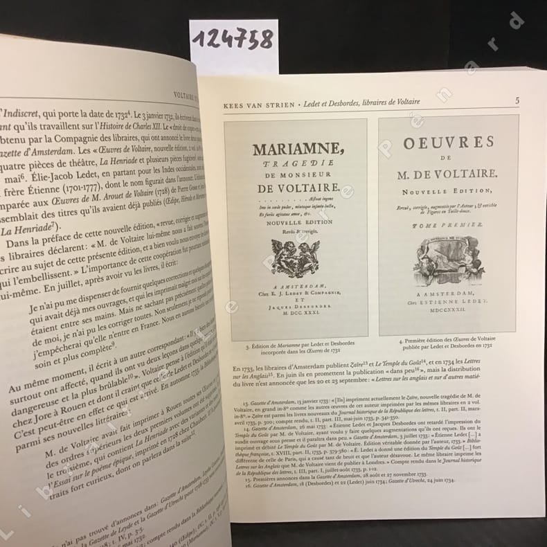 Voltaire est l'homme du livre par excellence, sans doute le premier à avoir su tirer parti de la nouvelle puissance de communication et de diffusion du livre et sans doute un des derniers à avoir pu s'imposer comme seul maître d'œuvre du livre, sans devoir partager ses prérogatives intellectuelles avec un quelconque éditeur. Il a travaillé toute sa vie et avec une intensité croissante à s'adresser directement au public, sans se soumettre aux contraintes du régime légal et aux pratiques du monde du livre. Dans un combat de tous les instants, il a imposé, contre la censure, contre les intérêts des libraires et contre les usages de la profession, son livre, pensé jusque dans le détail de sa typographie, travaillé jusqu'au dernier moment et constamment corrigé. Ce premier volume, qui inaugure la collection Publications de la Société Voltaire, a l'ambition de réunir les éléments nécessaires pour observer et penser ce rapport singulier de Voltaire au livre. Il est issu en partie d'un colloque organisé par la Société Voltaire à la Bibliothèque nationale de France. D'autres développements y ont été ajoutés, ainsi que de nombreuses illustrations, pour en faire, sinon un premier état de la question, du moins un point de départ utile, où trouver des problématiques, une bibliographie, ainsi que des études et des documents inédits. L’ouvrage se décompose en trois parties, dont les intitulés sont les suivants : I - "Voltaire et le monde du livre ", II - "Circulation et réception du livre voltairien", - III "De la lecture à l’écriture". Voir le sommaire complet sur photos jointes.