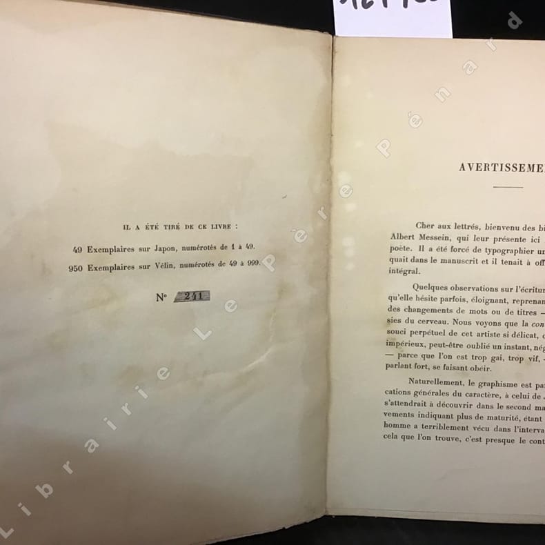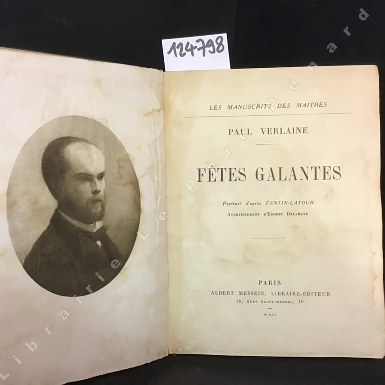 1920 Albert Messein, éditeur, Paris, collection "Les Manuscrits des Maitres" - 1920 - In-8, broché, sous couverture rempliée - sans pagination - Un des 950 exemplaires sur Vélin, numéroté 241 - Manuscrits de Paul Verlaine reproduits en fac-similé - Un portrait de l'auteur d'après Fantin-Latour en frontispice
