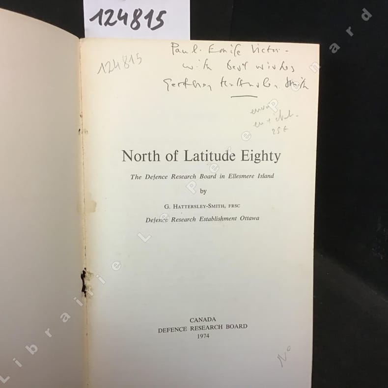 1974 Canada, Defence Research Board - 1974 - In-8 broché, couverture illustrée - 121 pages + cahier photographique en milieu d'ouvrage + carte volante de Ellesmere Island - ENVOIE DE L'AUTEUR à Paul-Emile Victor - Carte du Canada en 2e de couverture et première de garde - Illustrations en N&B, in et hors-texte, dans l'ouvrage