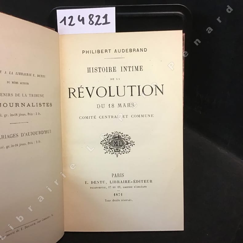 Édition originale. « L'adjectif « intime » est révélateur de l'orientation ; ainsi l'auteur souligne les traits d'humanité de l'armée versaillaise, « vite populaire ». Exemplaire sans la préface (pages I à VII). Pâles rousseurs. Del Bo p. 88 ; Le Quillec 214.