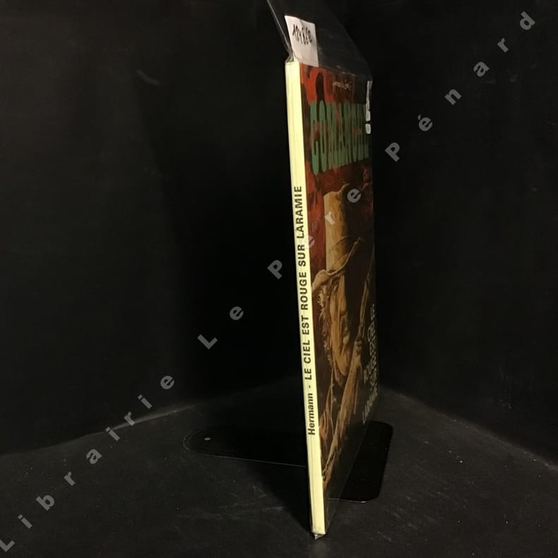 Editions Le Lombard 2004. In-4 cartonnage éditeur de 262 pages au format 31 x 24 cm. Couverture inédite. Dos carré. Plats et intérieur frais,malgré d'infimes frottis et tassements aux coins et mors du dos. Couverture et illustrations en couleurs de Hermann Huppen dit Hermann sur scénarios de Michel Greg. Album qui contient, avec les couvertures des albums originaux conservées, l'intégralité des 5 premiers tomes dessinés par Hermann : Red Dust – Les Guerriers du Désespoir – Les Loups du Wyoming - Le Ciel est rouge sur Laramie – Le Désert sans Lumière + Le Palomino ( histoire courte ). Dossier en début d'ouvrage et illustrations inédites en fin. Edition originale, notée " première édition ". Précieux exemplaire avec ex-libris représensant " Red Dust ", tiré et numéroté à 150 exemplaires, édité par " Fantasmagories ", signé par Hermann, collé en page de garde. Rare.