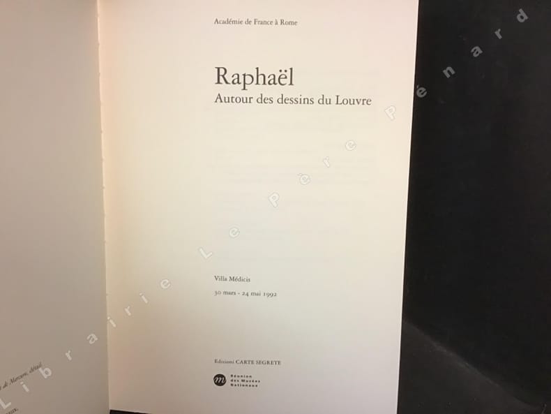 1992 Editions de la Réunion des musées nationaux - 1992 - Fort in-4 broché, sous jaquette cartonnée souple illustrée - 375 pages - Ouvrage publié à l'occasion de l'exposition "Raphaêl - Autour des dessins du Louvre" organisée par l'Académie de France à Rome à l'initiative du Musée du Louvre, à la Villa Médicis du 30 mars au 24 mai 1992 - Nombreuses illustrations en couleurs, in et hors-texte, dans l'ouvrage