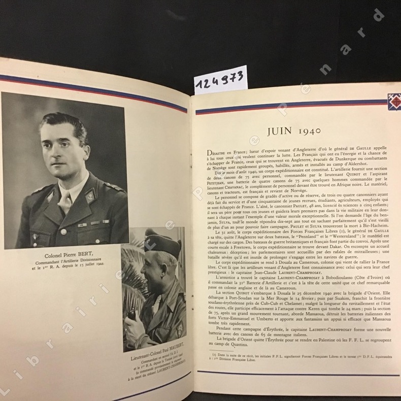 Paris Draeger, sans date 0 in 4 (27x21) 1 volume broché, couverture illustrée, 36 pages [1], avec de illustrations en couleurs, et de nombreuses photographies en noir et blanc. Forces Françaises Libres, Ière Division Française Libre. Bel exemplaire ( Photographies sur demande / We can send pictures of this book on simple request )