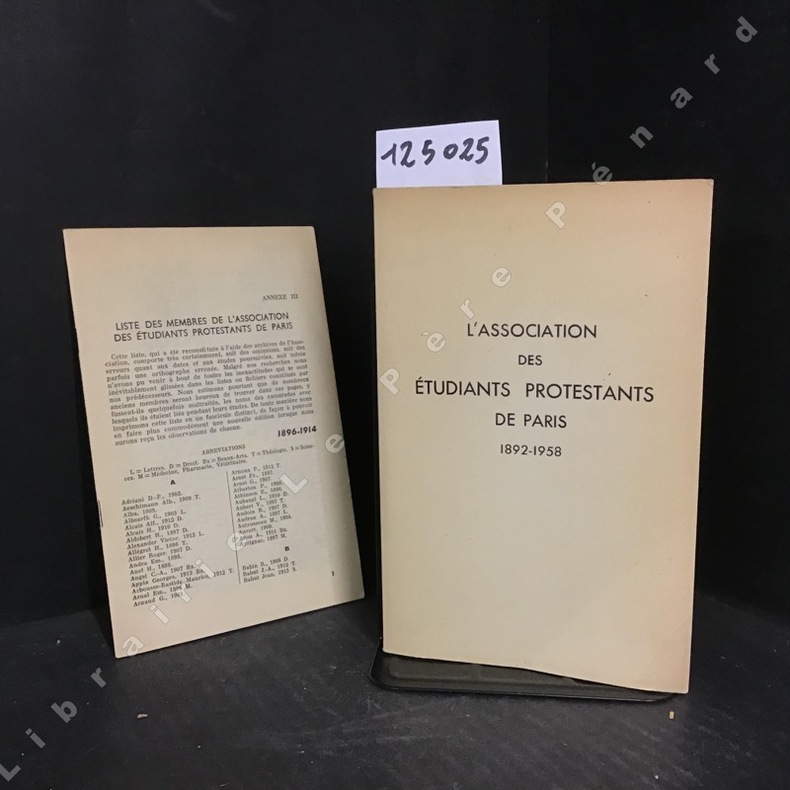1959 Imprimerie Tournon et Cie - 1959 - In-8 broché de 103 pages + annexe de 20 pages "Liste des membres de l'association des étudiants protestants de Paris"