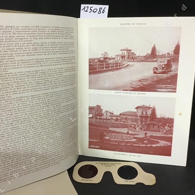 vers 1930 Paris, Les Editions en Anaglyphes, sans date (vers 1930 ?). Un album de format in 8° de 4 pp.; une carte coloriée, 22 vues en relief. Lunettes. Couverture cartonnée souple.
