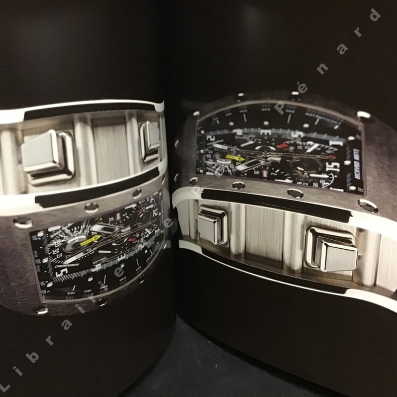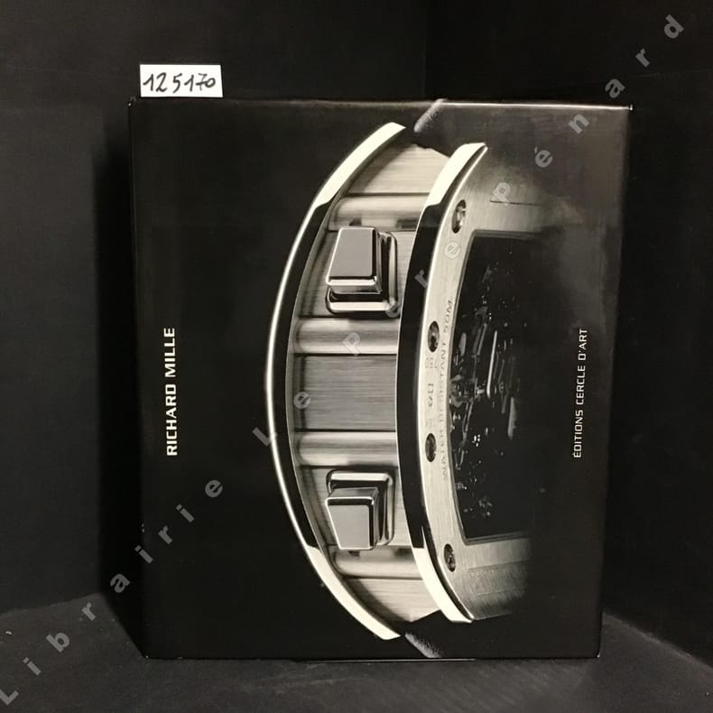 Paris, Cercle d'Art, 2006, Première Edition, in-folio, cartonnage toilé noir éd., jaquette photos en noir éd., 240 pp., papier glacé, très nb. Photos en coul. et en noir de Guy Lucas de Peslouän, bilinge en français et en anglais, in frenc and in english, La dernière collection de montres de ce grand designer. UN MUST. Des photos à couper le souffle ! Des photos de la RM 008-1, montre à balancier d'une valeur de 500,000 euros !. Le livre est à la hauteur de l'horloger : luxe et voluptée. RARE Très bon état