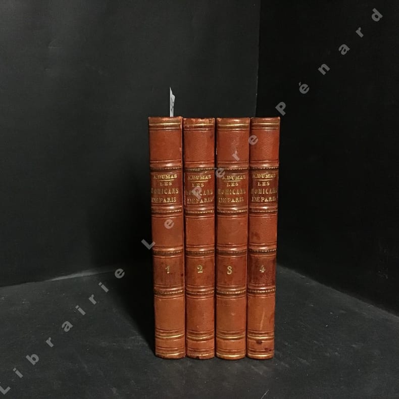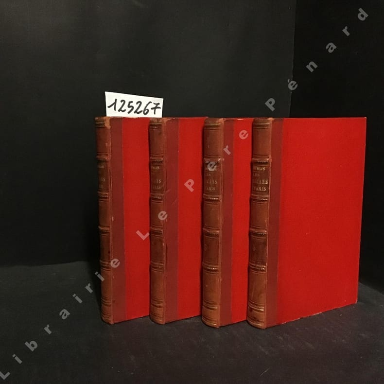 1874 Paris, Michel Lévy Frères, Editeurs, Librairie Nouvelle - 1874 - Nouvelle édition - Complet en 4 volumes in-12 (12x17,5cm environ), reliure demi basane rouge, plat percaline rouge, dos à 4 nerfs, titre et tomaison en doré au dos, filets à froid et en doré au dos - 314 + 300 + 310 + 288 pages - Oeuvres complètes d'Alexandre Dumas publiées dans la collection Michel Lévy