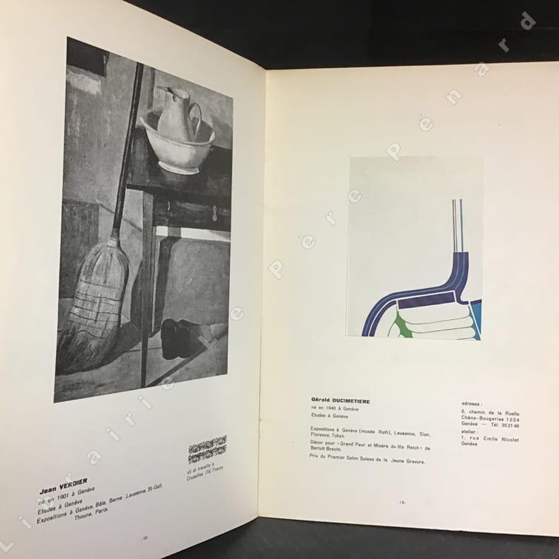 1968 Aurora, Galerie d'Art Moderne, Genève - 1968 - Plaquette in-folio de 20 pages, couverture illustrée - Tirée à 800 exemplaires dont 500 numérotés, celle-ci porte le numéro 277 - Cette plaquette est illustrée de 11 reproductions en N&B hors texte, une illustration en couleurs contrecollée et une lithographie originale de 49x34cm, non reliée, de Philippe Schibig, numérotée (277/499) et signée.