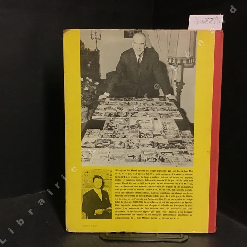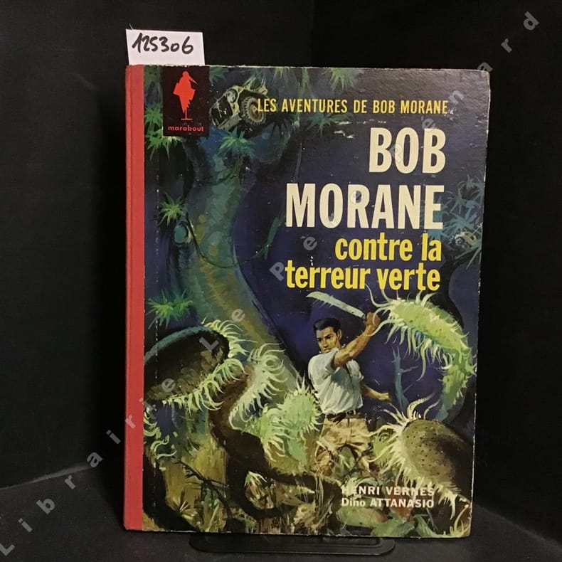 Editions Gérard & Co / Marabout 1963. In-4 cartonnage éditeur de 62 pages au format 30 x 23 cm. Couverture illustrée. Dos toilé rouge avec petites brunissures en haut et bas du 1er mors. Plat et intérieur frais, malgré des coins frottés très légèrement tassés et frottés avec carton apparent, de façon minuscule, à certains endroits. Couverture, pages de garde et dessins en couleurs de Dino Attanasio sur scénario de Henri Vernes. Liste des livres parus de Bob Morane en fin d'ouvrage. Photos des auteurs au 4ème plat. Edition originale en très bel état général. Côte 150 € au BDM