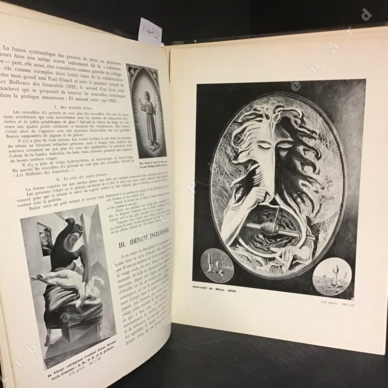 P., editions "Cahiers d'Art", 1937, in-4, broché, couverture illustrée, 119 p. Portrait en frontispice par Man Ray. Textes d'Aragon, A. Breton, C. Cahun, R. Crevel, P. Eluard, R. Desnos, J. Viot, G. Hugnet, T. Tzara, etc. Reproductions hors texte dont une en couleurs. Haut du dos recollé, sans manque.