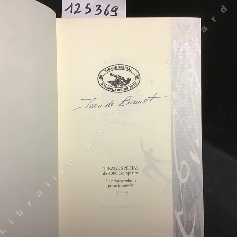 2007 A Paris, Chez Jean de Bonnot, tenant négoce de libraire à l'enseigne du canon - MMVII (2007) - In-8, reliure plein cuir vert de l'éditeur, dos lisse portant titres et riche décor en noir et en doré, plats décorés, tranche de tête dorée, signet, frontispice - 503 pages sur papier vergé filigrané - Illustrations en N&B in et hors texte - Exemplaire de tête - Tirage spécial de 4000 exemplaires, le présent volume porte le numéro 717