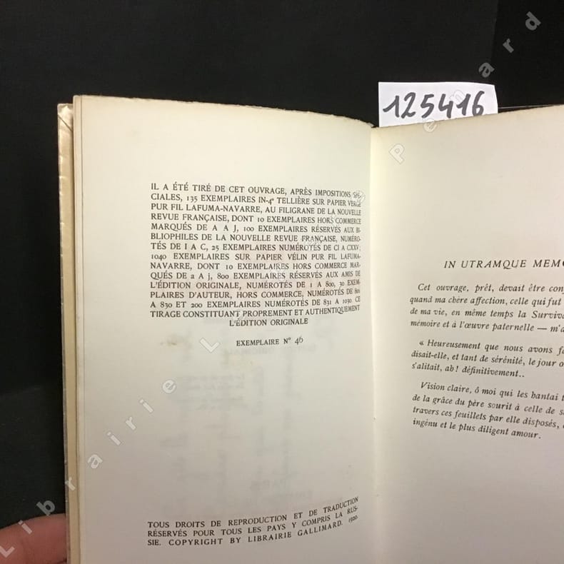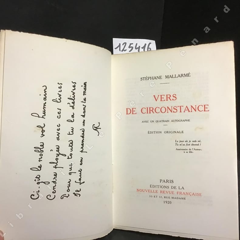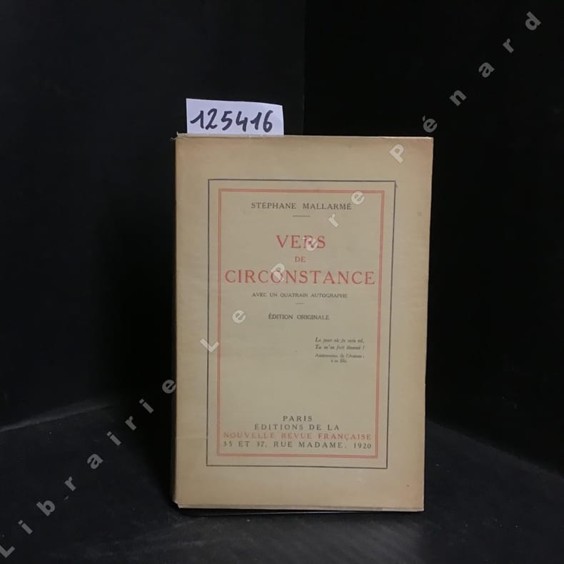 1920 Paris, Editions de la Nouvelle Revue Française, Gallimard - 1920 - Edition originale - In-8 broché, reproduction d'un quatrain autographe en frontispice, sous papier cristal - XII-192 pages - L'un des 1040 exemplaires sur papier vélin pur fil Lafuma-Navarre, numéroté 46