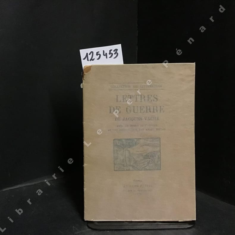 Paris, K éditeur, 30 avril 1949, in-12, non paginé, environ 70 pp, broché, couverture rempliée imprimée, Édition en partie originale, exemplaire non justifié. Complet du bandeau "préfaces d'André Breton". Recueil de lettres de Jacques Vaché envoyées à André Breton, Théodore Fraenkel, Louis Aragon et Harry James alors qu'il était au front, ou en prison. Ces lettres sont précédées de quatre préfaces d'André Breton, grand ami de Vaché, qui eut une profonde influence sur lui et sur le mouvement surréaliste. Breton écrira à propos de ces lettres de guerre qu'elles sont "une magnifique introduction à tout ce qui recouvre l'étiquette Dada. Il y a là tous les manifestes qu'on voudra, pas une négation ne manque" dans une lettre à Jacques Doucet datant du 4 janvier 1921. En fin d'ouvrage, l'article L'Opium, extrait de L'Express de l'Ouest du 9 janvier 1919, reproduit en fac-similé, dans lequel est annoncée la mort de Jacques Vaché et de l'un de ses amis, à la suite de l'absorption d'une trop forte dose d'opium et dans lequel les deux victimes sont présentées à la fois comme de "jeunes écervelés" sans expérience de la drogue ainsi que comme "de braves soldats qui avaient fait leur devoir devant l'ennemi et avaient été blessés". L'ouvrage contient aussi un fac-similé d'une lettre d'Harry James. Bel exemplaire. Couverture rigide