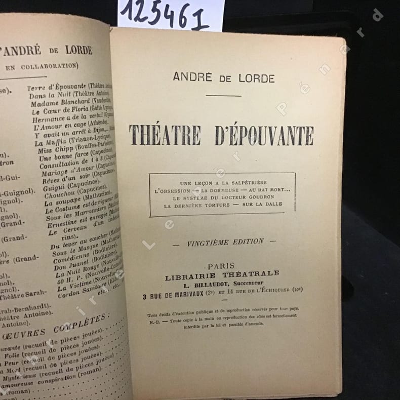 Recueil de pièces d'épouvante, préface Albert Sorel, avant-propos André de LORDE, édité par la Librairie Charpentier et Fasquelle, 1909. Ouvrage relié demi-cuir. Rousseurs éparses.