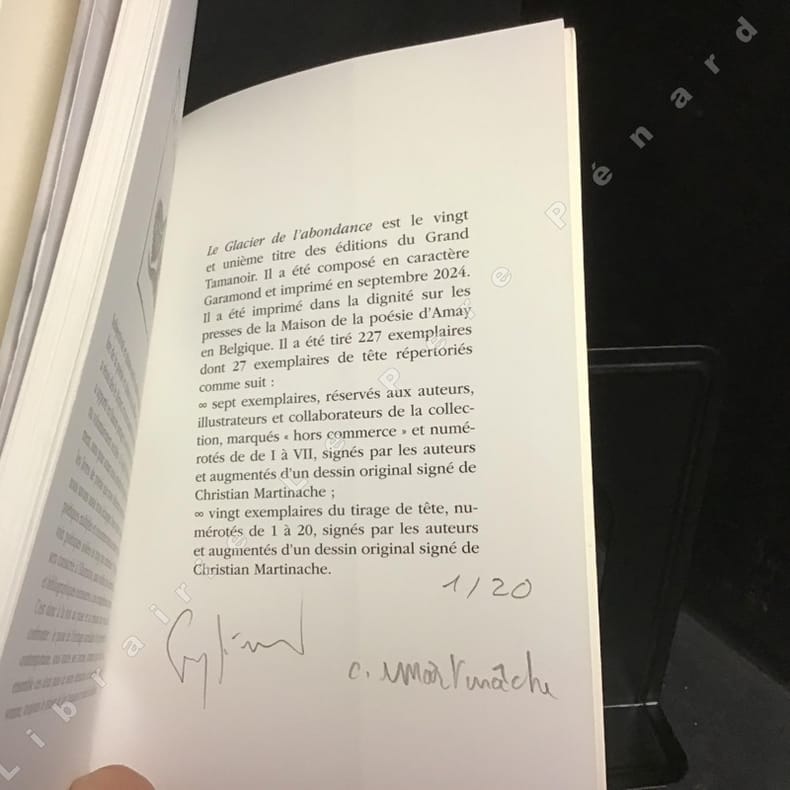 2024 Le Grand Tamanoir - 2024 - In-8 broché, couverture illustrée à rabats - 93 pages - Illustré de dessins intuitifs, hors texte et en couleur, de Christian Martinache Ouvrage tiré à 227 exemplaires, celui-ci est l'un des 20 exemplaires du tirage de tête (après 7 "hors commerce"), numéroté 1/20, signé par les auteurs et augmenté d'un dessin original signé de Christian Martinache