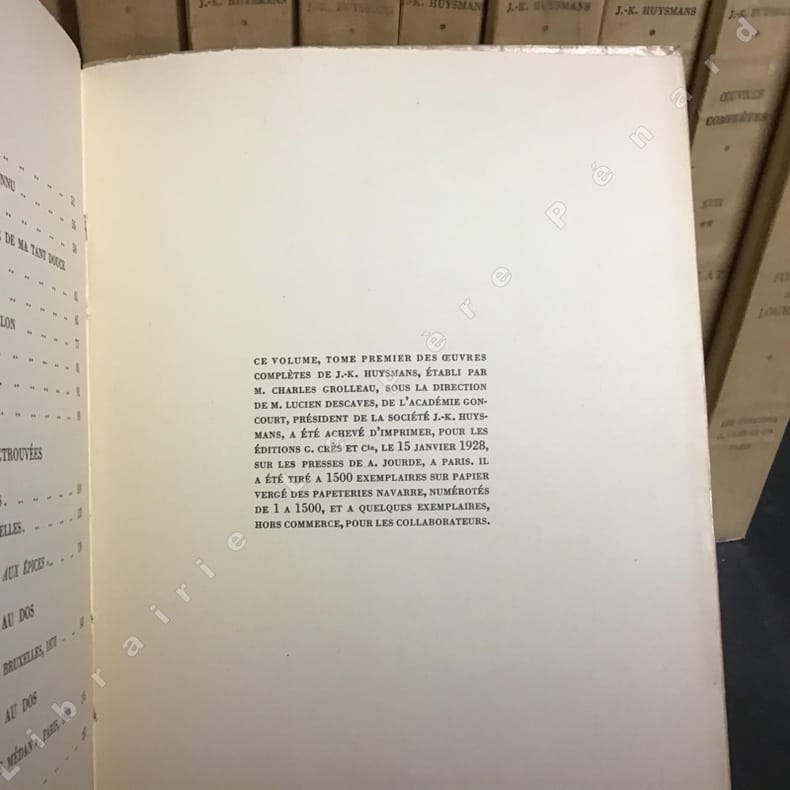 Comprend : Vol. I, Le Drageoir aux épices ; Sac au dos - II, Marthe, histoire d’une fille ; émile Zola et l’Assommoir - III, Les soeurs Vatard - IV, En ménage - V, à Vau-l’eau ; Pierrot comique ; Un Dilemme - VI, L’Art moderne - VII, à Rebours - IX, En Rade - XIII, En Route (2 volumes) - XIV, La Cathédrale (2 volumes). Bon état d’occasion