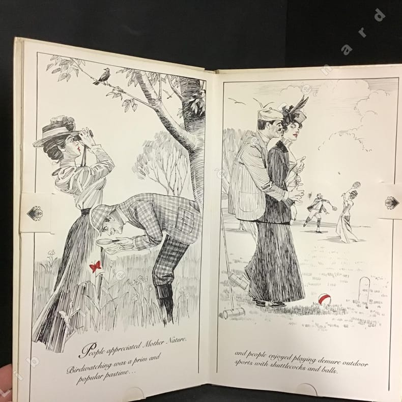 Etats-Unis, Los Angeles, Intervisual Books 1982. In-8 cartonnage éditeur de 14 pages au format 30 x 17,5. Couvertures illustrées. Dos carré. Plats et intérieur frais, malgré d'infimes tassements aux coins. Couvertures et superbes illustrations en noir de Borje Svensson. Textes de Peter Seymour. Conception de Lesley Jane Kaiser. Réalisation par Keith Moseley et John Strajan. Hilarant livre à système " érotique " sur l'époque Victorienne, avec un savoureux personnage qui ressemble fortement à Sherlock Holmes. Tous les système fonctionnent. Rare édition originale américaine de ce petit bijou du livre Pop-Up.