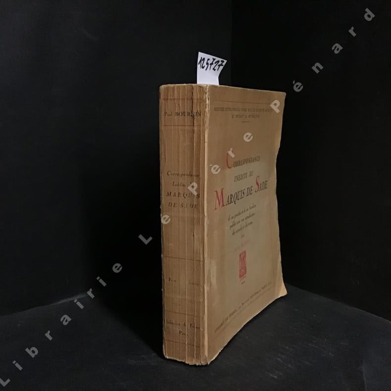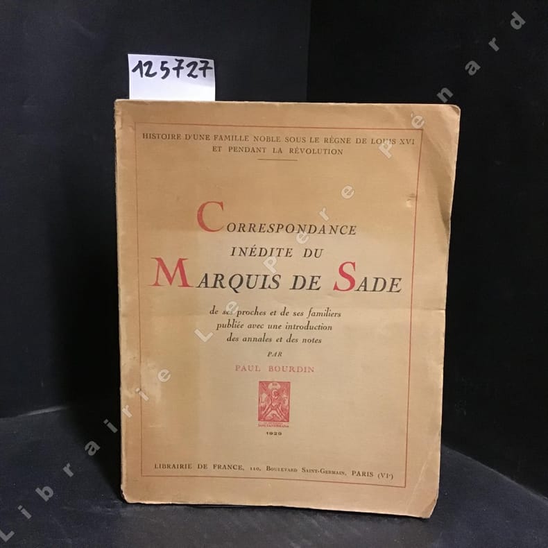 "1929. Paris Librairie de France 1929 - Broché 19 cm x 24 cm XIX + 454 pages ex. num. sur Navarre - Lettres du Marquis de Sade introduction annales et notes de Paul Bourdin - Non coupé dos restauré sinon bon état"