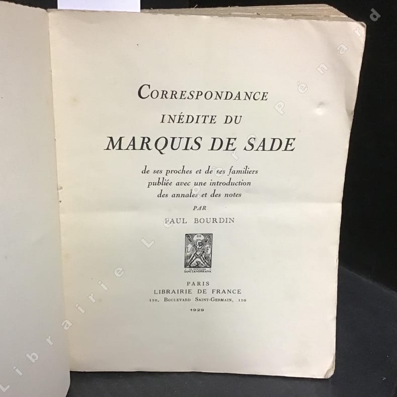 En 1929, Paul Bourdin est le premier à publier – avec une introduction, des annales et des notes – l’importante Correspondance inédite du marquis de Sade, de ses proches et de ses familiers, conservée par le notaire d'Apt Gaufridy, régisseur des biens des Sade en Provence pendant vingt-six ans et homme de confiance du marquis, de Mme de Sade et de Mme de Montreuil. Ces lettres donnent l’histoire presque journalière de sa famille de 1774 à 1800. Sans ces lettres, aujourd’hui disparues, dont les vers commençaient à faire « de la dentelle » et qui donnent l’histoire presque journalière de sa famille depuis le début de 1774 jusqu’en 1800, les grandes biographies de Sade n’auraient pu être aussi complètes. — "Oui, je suis libertin, j'ai conçu tout ce qu'on peut concevoir dans ce genre-là, mais je n'ai sûrement pas fait tout ce que j'ai conçu et ne le ferai sûrement jamais. Je suis un libertin, mais je ne suis pas un criminel ni un meurtrier." (Lettre à Mme de Sade, écrite à Vincennes le 20 février 1781)
