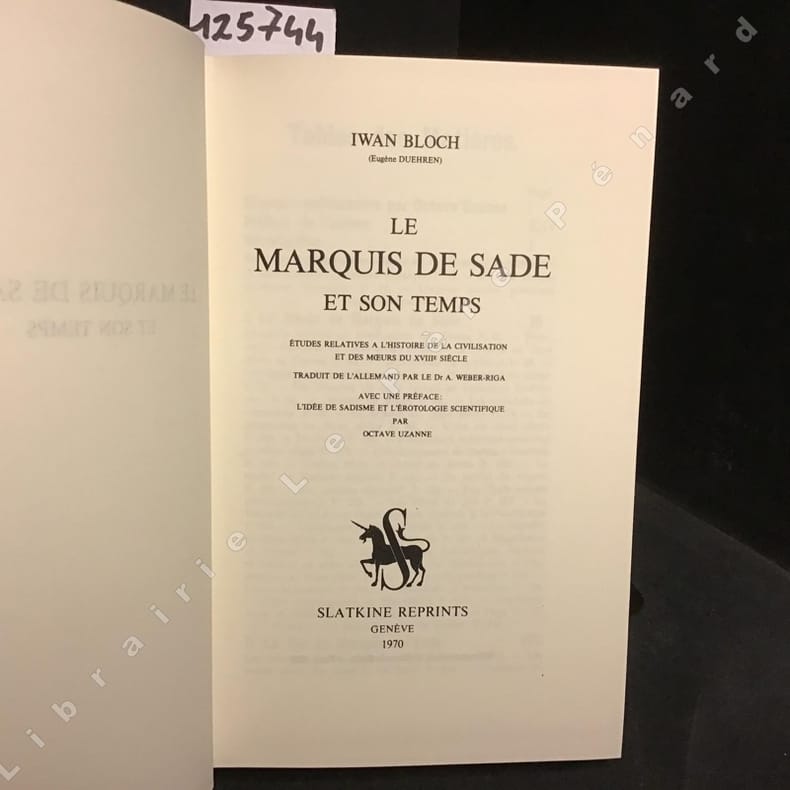 Traduction de : Der Marquis de Sade und seine Zeit.... Avec une préface : L'idée de Sadisme et l'érotologie scientifique par Octave Uzanne....EDITION ORIGINALE de cette rare et importante étude....BEL EXEMPLAIRE.....en bon état (good condition). en bon état