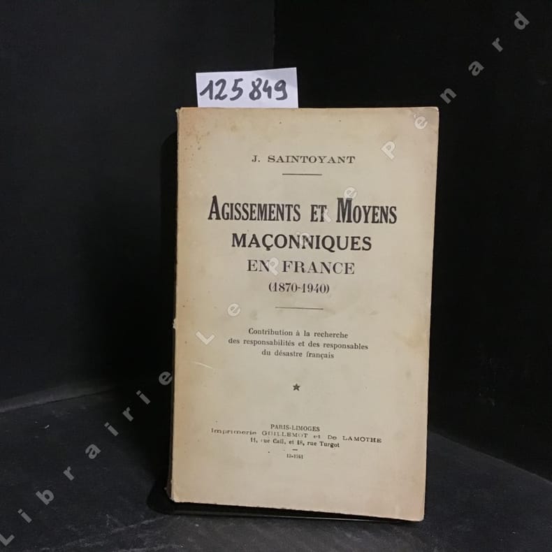1941, Imprimerie Guillemot et de la mothe, in-8 broché de 317 pages, Agissements et moyens maçonniques en France (1870-1940), contribution à la recherche des responsabilités et désastre français | Etat : bon état (Ref.: ref90288)