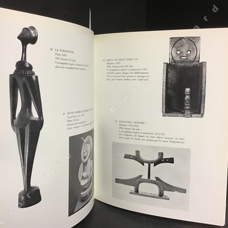 :: Texte de Alain Bosquet. :: Illustré de photographies en noir, soit 71 oeuvres décrites, 19 vues de sculptures en plein air et un frontispice. Contient : reliefs, sculptures, masques, granits sculptés de Maloja, reliefs et sculptures de Saint-Martin d'Ardèche et de Sédona. :: Catalogue d'expo. Broché. Bon état.