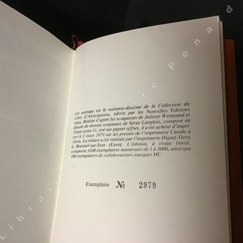 1979 Editons Opta / Club du Livre d’Anticipation - N°70 - 1979 - In-8, cartonnage toilé décoré de l'éditeur, sous jaquette rhodoïd - 635 pages - Exemplaire numéroté 2979 / 3000