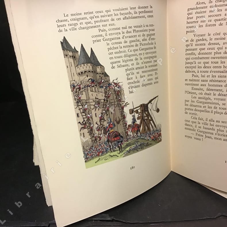 1973, Jean de Bonnot, in-8 plein cuir rouge, titrage et décors dorés sur dos et les plats, signet rouge, tranche supérieure dorée, Les Oeuvres de mâitre François Rabelais docteur en médecine contenant la vie très horrifique du grand Gargantua et les horribles et épouvantables faits et prouesses de son fils le renommé Pantagruel. | Etat : Bon état, quelques frottements (Ref.: J13025)