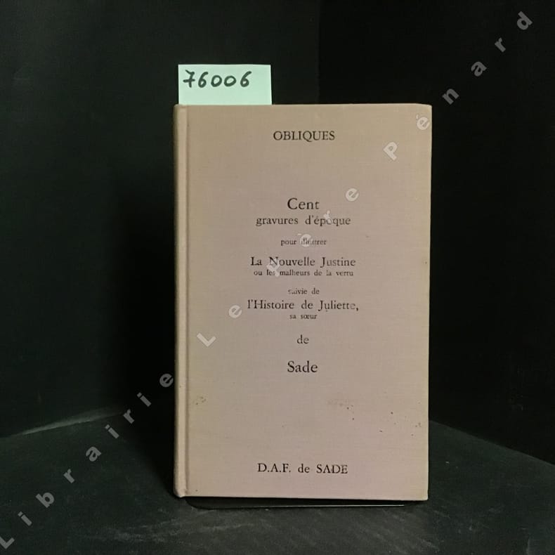 Images Obliques - Editions Borderie Paris 1978 In-8 ( 215 X 140 mm ) de 110 pages, pleine toile violine à la bradel, titre poussé en lettres noires sur le plat supérieur ( reliure de l'éditeur ). Offre la reproduction des 100 gravures qui ornent l'édition de 1797 de La Nouvelle Justine. Collection dirigée par Roger Borderie et Michel Camus. Bel exemplaire.
