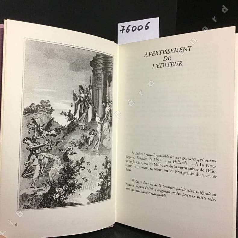 Offre la reproduction des 100 gravures qui ornent l'édition de 1797 de La Nouvelle Justine (en dix volumes). - - VENTE PAR CORRESPONDANCE UNIQUEMENT - LIEN DE PAIEMENT, NOUS CONSULTER.