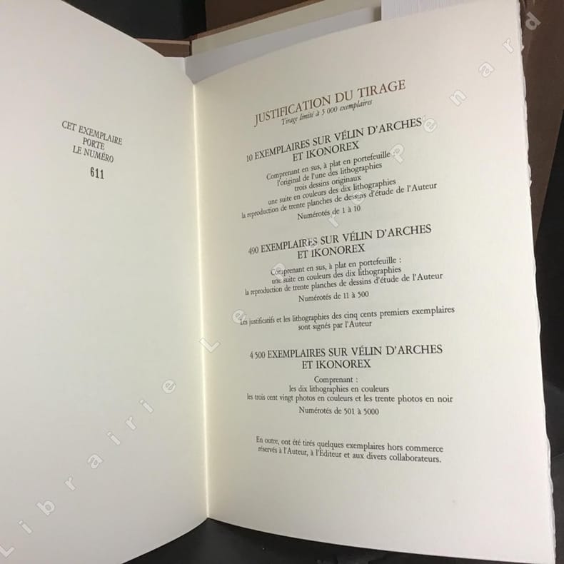 1981 Editions du Grésivaudan et Maddly Bamy - 1981 - 2 forts vol in-4 en feuilles réunis dans une chemise demi-chagrin (pour chaque volume) puis dans un étui toilé réunissant les deux volumes - 252 pages - Tirage limité à 5000 exemplaires, celui-ci est l'un des 4500 exemplaires sur Vélin d'Arches et Ikonorex (3eme papier), numéroté 611, comprenant les 10 lithographies en couleurs de l'auteur + 1 en double - Photographies en couleurs de Maddy Bamy, photographies en noir & blanc de Joël L-Laffay