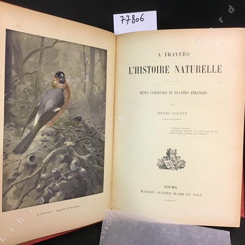 1901 Maison Alfred Mame et Fils, Tours - 1901 (MDCCCCI) - In-4, relié, cartonnage éditeur pleine percaline rouge richement orné de motifs botaniques et animaliers - Titre et auteur en doré - Toutes tranches dorées - 1901 - 398 pages - Nombreuses illustrations en N&B in texte - Une aquarelle de Giocomelli en couleur en frontispice