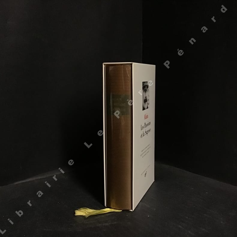 Gallimard NRF "Bibliothèque De La Pléiade" Paris 1960 In-12 ( 175 X 110 mm ) de XLVI-1430 pages, pleine basane havane, dos lisse orné de filets dorés, sous jaquette illustrée, rhodoïd et étui de carton gris. ( Présentation de l'éditeur ). Texte établi et présenté par Georges BENEZE, préface d'André BRIDOUX. Très bel exemplaire.Ce volume contient: Préface, introduction, les édées et les âges, les sentiments familiaux, les aventures du coeur, souvenirs de guerre, Mars ou la guerre jugée, souvenirs concernant Jules Lagneau, abrégés pour les aveugles, Platon, Descartes, Hegel, 81 chapitres sur l'esprit et les passions, entretiens au bord de la mer, index.