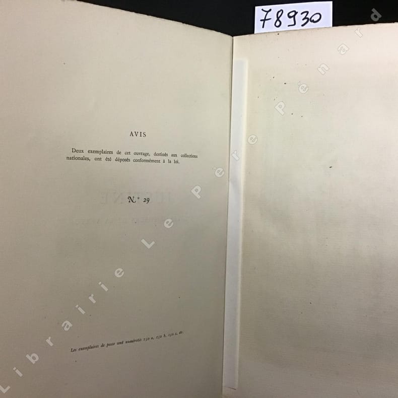 Bon état malgré une couverture un peu sale et des traces d'usure - Plis de lecture au dos - Intérieur très frais sans rousseurs - Ouvrage protégé par une ancienne couverture en papier translucide - Ex-libris collé sur la deuxième de couverture