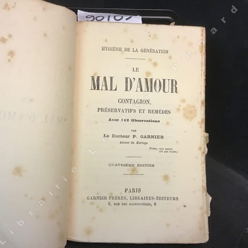 1933 A Paris, Librairie Garnier Frères, Collection " Hygiène de la Génération". sans date (vers 1930). 1 vol in-8, broché. 489 pages