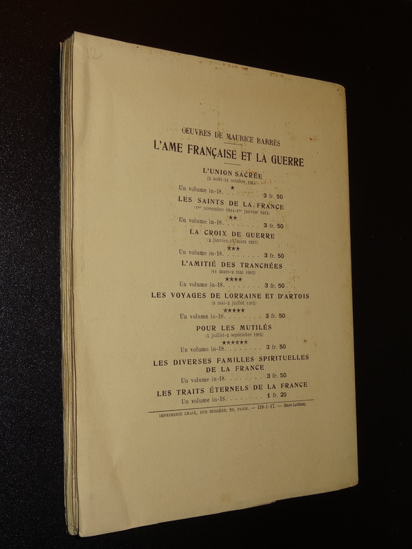 P., Emile-Paul Frères, 1917, pt in-8°, 110 pp, broché, couv. papier gris avec titres en noir, bon état