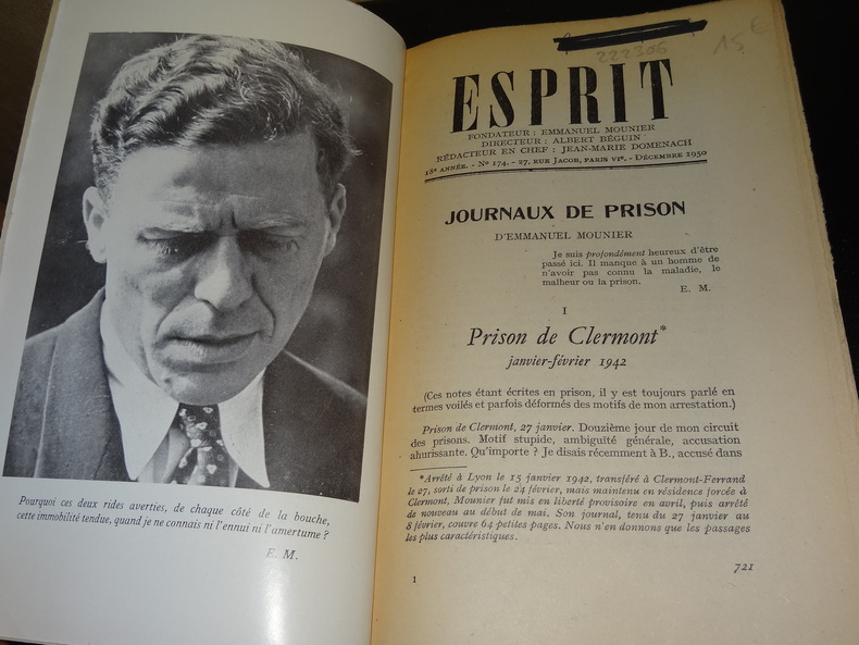 Aux Éditions du Seuil, "La Condition Humaine", 1 volume broché de format 23 x 14 cm, 360 pages, 2 portraits photographiques et 4 fac simile d'écriture, initiales de l'ancien propriétaire en couverture ainsi que son nom surchargé au feutre en page de titre, sinon bon état, frais de port en supplément.
