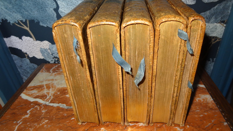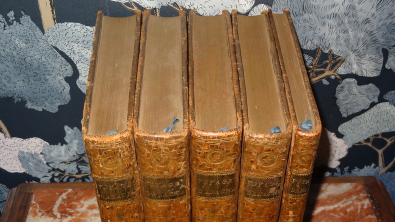 A Paris; chez De Bure l'Aîné, édition originale in-4, 5 volumes de format 26 x 21 cm, reliures plein veau d'époque, dos ornés, toutes tranches dorées, XVIII, 555 + II, 647 + II, 601 + II, 383, CLXXXVII pages pour les 4 volumes de texte et XLI pages + 31 planches pour l'atlas. Légères usures au niveau des mors, coins un peu frottés, intérieurs en bel état, collationnés complets. Frais de port offerts en colissimo pour la France.