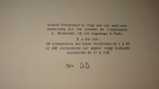 Edition originale de ce poème autour de Pierre Ino (1909 (?) - 1989), Artiste-peintre surréaliste russe, né à Saint-Petersbourg.1 des 100 exemplaires numérotés sur vergé Hollande, seul tirage après 10 exemplaires sur Japon (N°75).Rare.