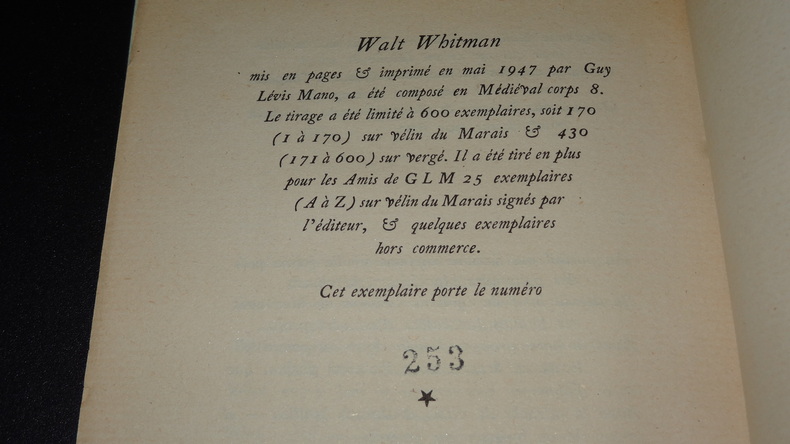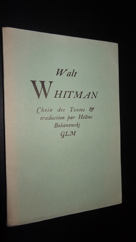 Éditions GLM, tirage à 600 exemplaires numérotés, ici l'un des 500 sur vergé (n°253), texte bilingue anglais/français, 1 plaquette brochée de format 16,5 x 11 cm, 70 pages, décoloration au dos, un nom à l'encre en page de garde, bon état. Frais de port en supplément.
