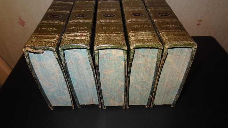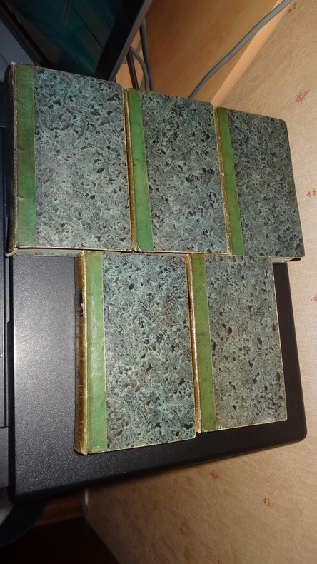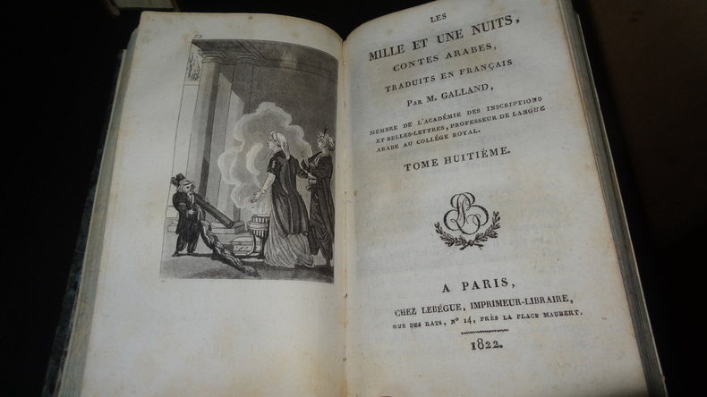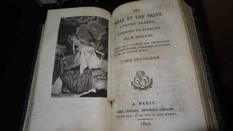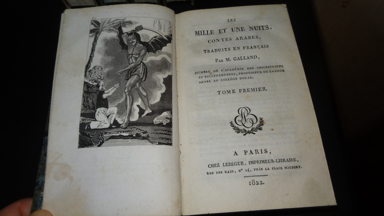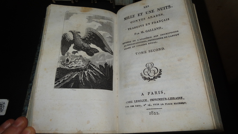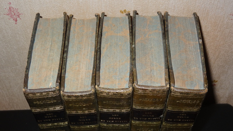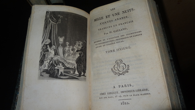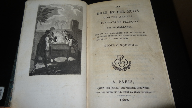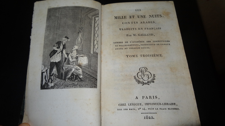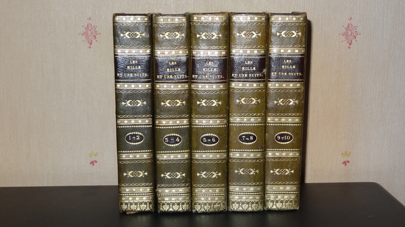 Traduits en français par M. Galland. A Paris; chez Lebègue, Imprimeur-Libraire, 5 volumes de format 17 x 10,5 cm, reliures demi basane d'époque, tranches marbrées, gravures en frontispice sur les 8 premiers tomes, 300 + 298 + 288 + 302 + 286 + 317 + 285 + 313 + 308 + 326 pages, impression sur papier vergé, reliures solides, angles et coiffes légèrement frottés, dos légèrement passés uniformément, intérieurs en bon état, avec quelques rousseurs éparses. . Frais de port en supplément.